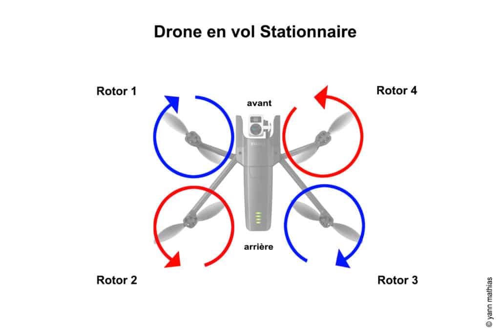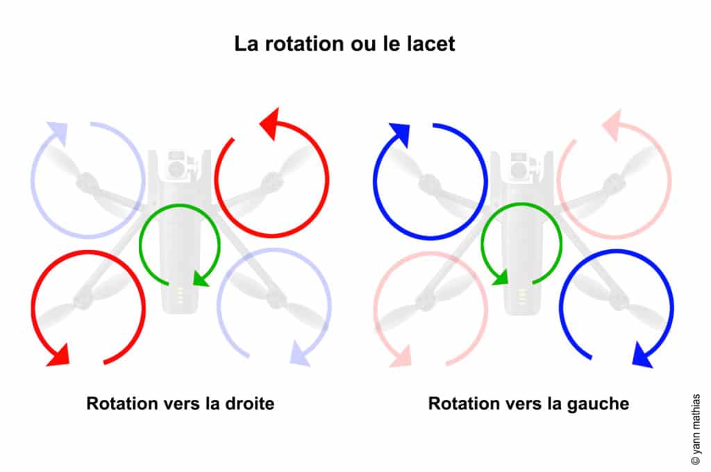 Ce phénomène est directement lié à la mécanique des hélices : chaque variation de vitesse crée un couple qui amène le drone à tourner sur son axe, un principe clé du pilotage quadrirotor.