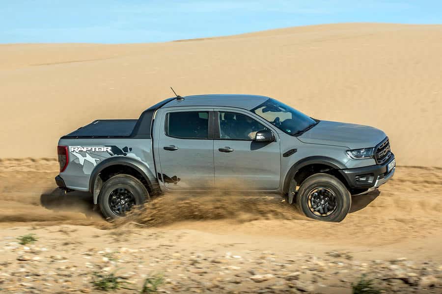 Oubliez les compromis quelques instants : le Ranger Raptor est un pick-up pensé pour le plaisir pur, inspiré des courses Baja. Plus imposant que le Ranger classique, il se distingue surtout par sa suspension : ressorts renforcés et amortisseurs Fox, pour encaisser les pires chocs à grande vitesse. La garde au sol grimpe de 30 %. Tout a été optimisé pour rouler vite et loin, même chargé.